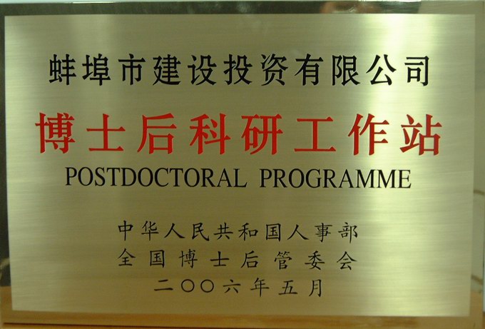最近,國家人事部以國人部發(fā)[2006]53號文批準蚌埠市建設(shè)投資有限公司等省內(nèi)8家單位設(shè)立博士后科研工作站。博士后科研工作站的設(shè)立,為公司科研開發(fā)和經(jīng)營管理引進高層次人才開辟了新的渠道?! ∧壳埃菊凑沼嘘P(guān)文件要求,結(jié)合公司實際,制定切實可行的博士后工作管理細則,規(guī)范工作程序,逐步建立完善博士后工作管理制度,并抓緊與全國已設(shè)立博士后科研流動站的高校、科研院所聯(lián)系,盡早確定聯(lián)合招收單位,研究確立高水平的博士后研究項目。博士后工作站建站事宜也正在緊張籌備之中。