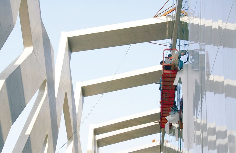 日前,施工人員在加緊安裝龍湖體育館外墻的幻彩鋁塑板。龍湖體育館的外觀造型采用透空大型群雕主題墻,既抽象又具體,既內(nèi)斂又張揚(yáng),通過構(gòu)件所產(chǎn)生的陰影投映在外墻面上,形成一個(gè)光影變化豐富的三維空間,動感十足,給人以無限遐想。體育館建成后將成為我市標(biāo)志性建筑,提升了城市品位