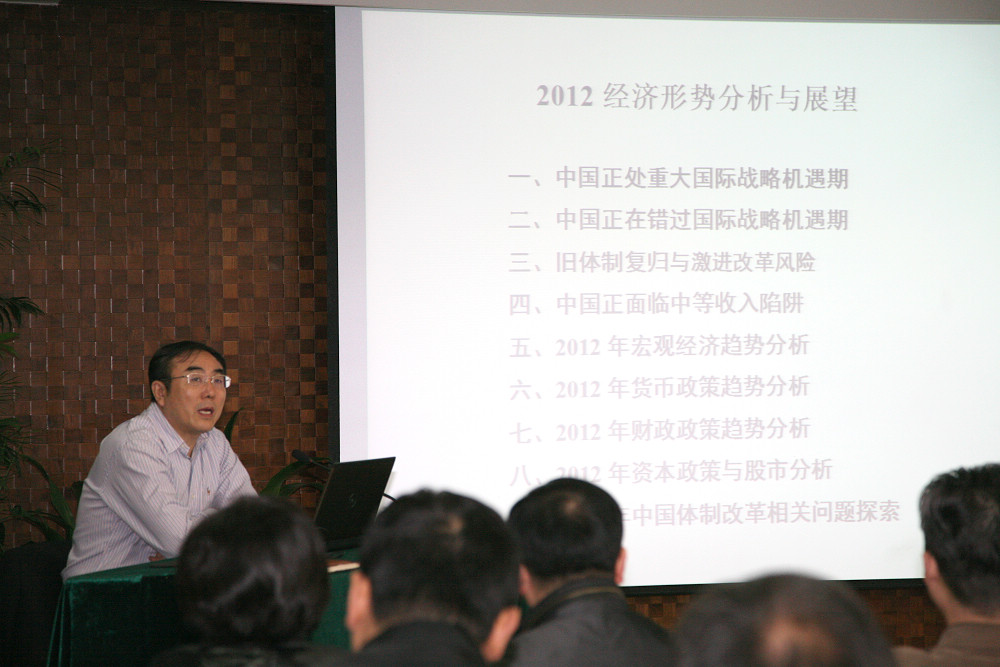 此次培訓(xùn)由中國(guó)政法大學(xué)資本研究中心主任劉紀(jì)鵬主講,劉紀(jì)鵬主任對(duì)當(dāng)前美國(guó)的衰落、中國(guó)的優(yōu)勢(shì)、歐債危機(jī)等國(guó)際形勢(shì)進(jìn)行了深入的分析,并著重分析了我國(guó)當(dāng)前經(jīng)濟(jì)現(xiàn)狀。他認(rèn)為中國(guó)應(yīng)抓住機(jī)遇,統(tǒng)一認(rèn)識(shí),正確決策與政策是關(guān)鍵,否則會(huì)錯(cuò)過國(guó)際戰(zhàn)略機(jī)遇期。同時(shí)重點(diǎn)分析了我國(guó)2012年宏觀經(jīng)濟(jì)趨勢(shì),提出了“化匯為產(chǎn),外儲(chǔ)內(nèi)用,規(guī)避風(fēng)險(xiǎn)”的對(duì)策,對(duì)明年我國(guó)貨幣政策、財(cái)政政策、資本政策闡述了自己的觀點(diǎn)。劉紀(jì)鵬主任講課內(nèi)容豐富、觀點(diǎn)鮮明、獨(dú)特,對(duì)于公司進(jìn)一步強(qiáng)化資本運(yùn)作具有指導(dǎo)意義和借鑒作用。