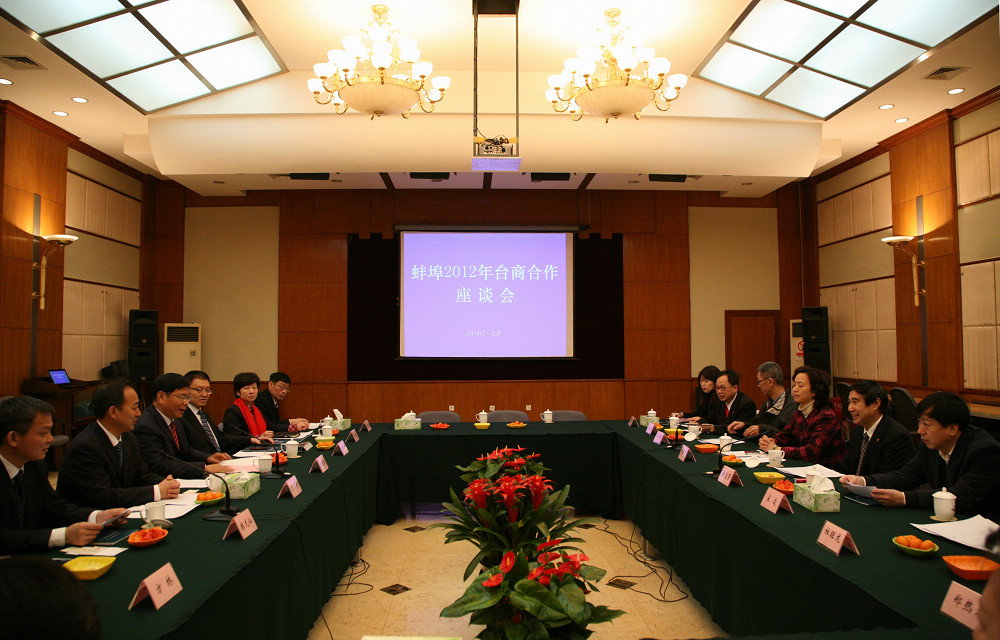 陳書記在講話中指出,近年來兩岸經(jīng)貿(mào)交流合作密切,蚌埠具有優(yōu)越的區(qū)位、便捷的交通、悠久的歷史、豐富的人力資源、良好的發(fā)展環(huán)境和優(yōu)惠的政策,目前正處于快速發(fā)展階段,希望通過臺盟中央認(rèn)識和邀請更多的臺胞到蚌埠來投資發(fā)展,深入推進(jìn)兩地經(jīng)貿(mào)與投資合作。臺盟中央黃主席表示,通過座談交流,臺盟中央及臺商對蚌埠有了更多的了解,將推薦更多的臺商赴蚌埠考察,尋求投資合作機(jī)會。臺商們都表達(dá)了到我市投資發(fā)展的濃厚興趣和意愿,座談會取了良好的效果。