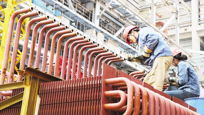 國電蚌埠發(fā)電有限公司以全市開展的“推進(jìn)思想解放,弘揚(yáng)城市精神”大討論為契機(jī),結(jié)合自身實(shí)際,在全體員工中大力弘揚(yáng)“事在人為、工作超前、后來居上,敢為人先”的企業(yè)精神,開展創(chuàng)業(yè)、創(chuàng)新、創(chuàng)優(yōu)活動,加快工程建設(shè)步伐。圖為施工人員在進(jìn)行鍋爐省煤器磨口作業(yè)。