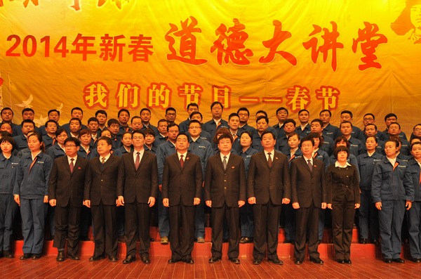 講堂上,首先由中環(huán)水務(wù)黨政班子成員和營業(yè)所員工大合唱《公民道德歌》。隨后講故事環(huán)節(jié)播放了感動中環(huán)水務(wù)的《天河應(yīng)急水源建設(shè)紀(jì)實》短片。在誦經(jīng)典環(huán)節(jié)中,誠信公司的《歡歡喜喜過大年》為我們講述了孝道,“小孝孝其身、中孝孝其心、大孝孝其志,至孝孝其慧”,生動的闡述、富有激情的表演獲得了在場陣陣掌聲。在學(xué)模范環(huán)節(jié)中,中國好人獲得者蚌埠公交集團(tuán)的107路車駕駛員楊苗苗、三級警監(jiān)、迎淮社區(qū)片警單修河到會,和與會人員暢談自己的內(nèi)心感受,使大家體會到只有踏實肯干、愛崗敬業(yè)才能贏得市民和社會的認(rèn)可,才能實現(xiàn)自我價值。